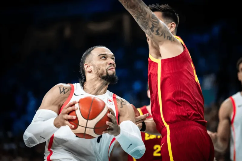 半场比赛结束,亚历山大13分,加拿大49-38领先西班牙。