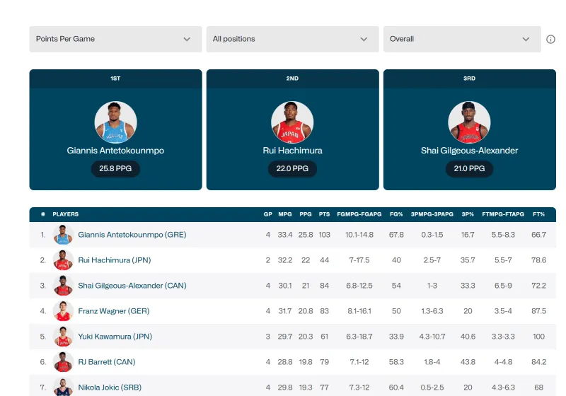 FIBA官网:阿德托昆博已大概率锁定本届奥运会得分王。