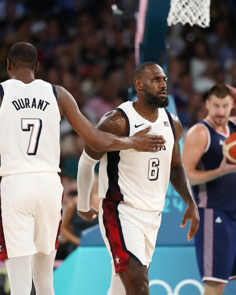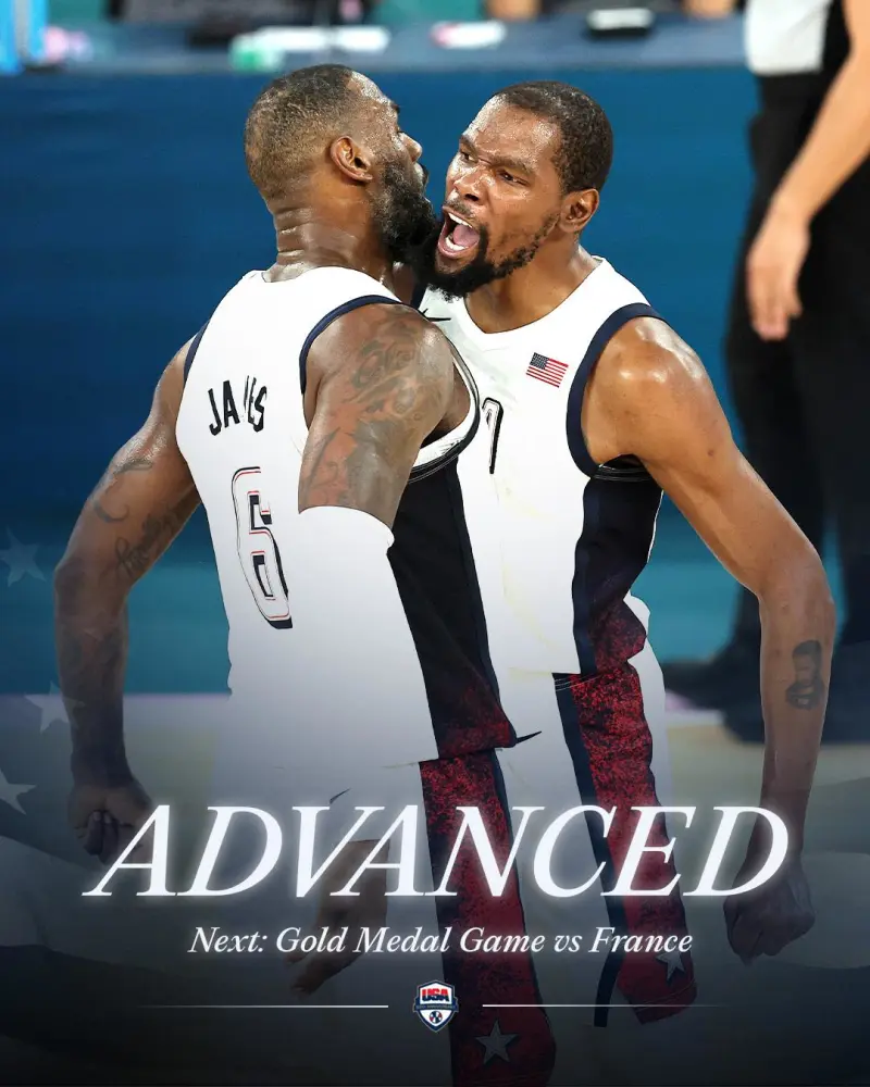 谈到他和队友在赛后的激情庆祝,杜兰特说:“是的,这是特殊的一群人。时间不多了,我们还剩一场比赛,感觉有点苦乐参半。我们要打金牌争夺战,有机会再夺一枚金牌。但是一旦我们结束在这里的任务,我们就不会在一起打球了。这段经历充满乐趣,包括在更衣室里与这些家伙们的相处,和他们畅谈人生,然后在场上和他们一起打球,这是我参与过的最佳球队,我想用一枚金牌为它收官。”